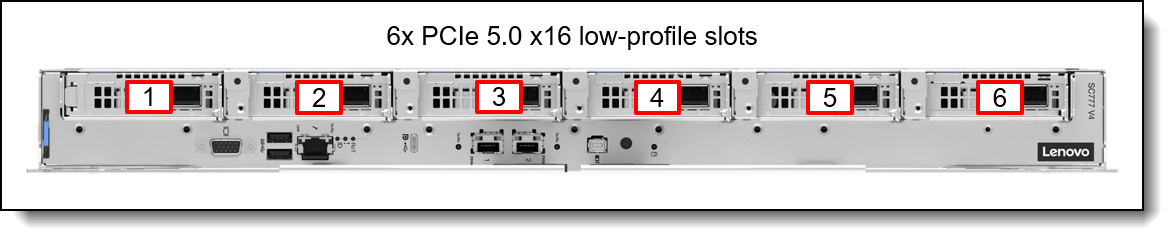 - The server has up to 6x PCIe Gen 5 x16 slots for high-speed networking, depending on the configuration.