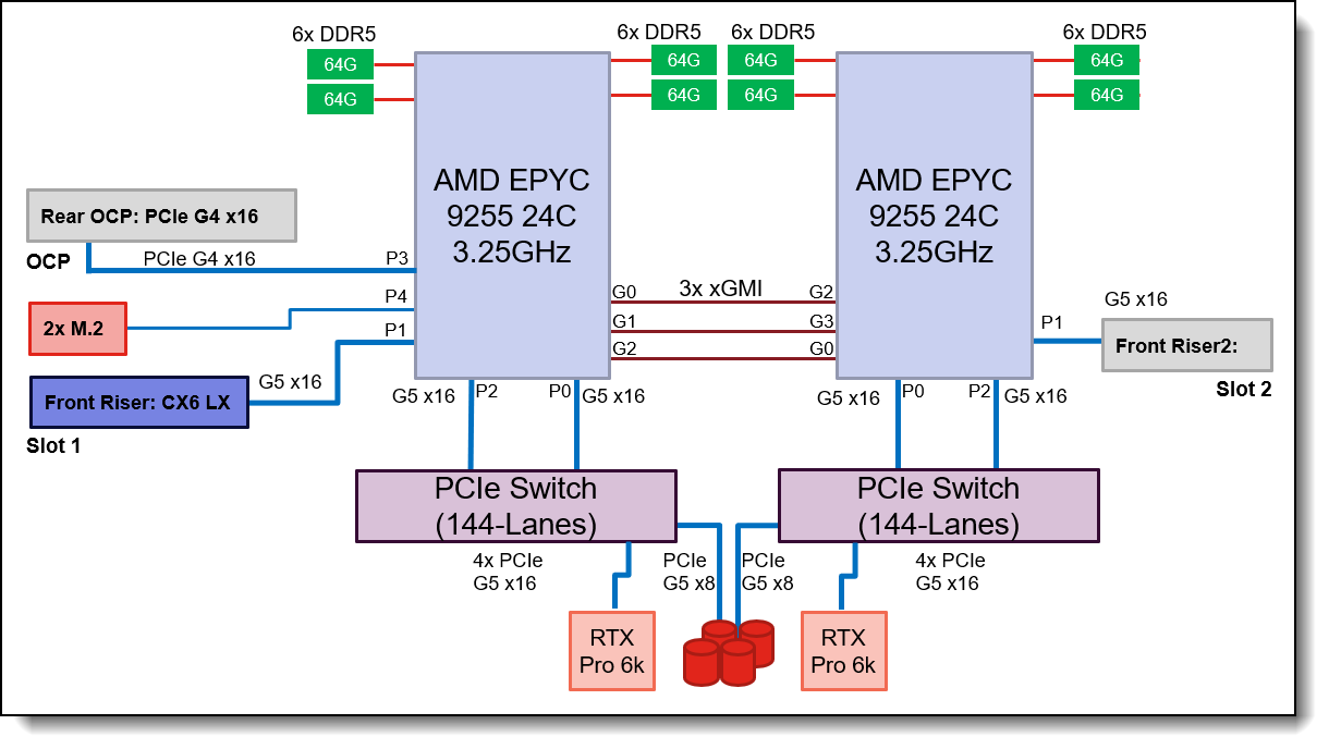 Figure 4. 221 AI Compute Node Block Diagram: SR675 V3 with RTX Pro 6000 Blackwell Server Edition