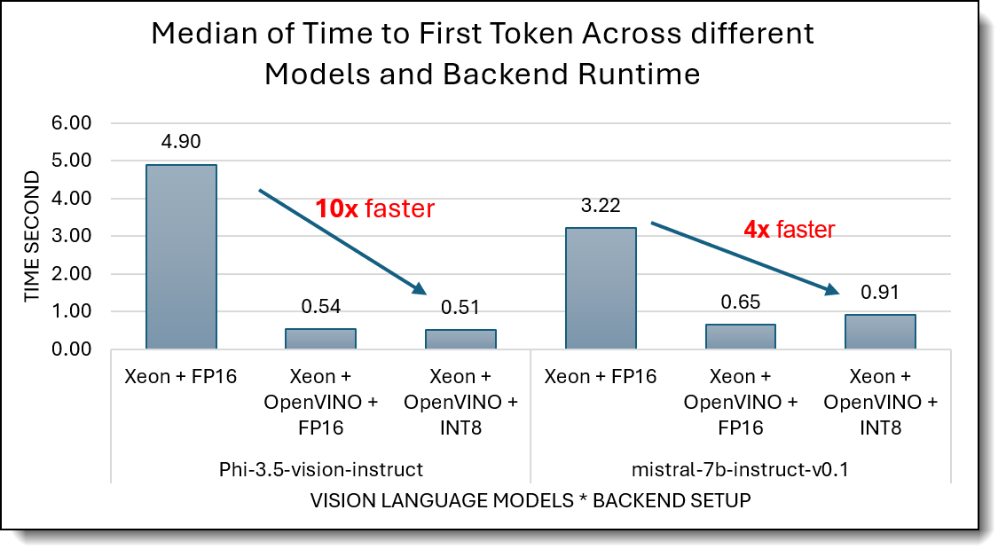 The chart below shows that OpenVINO effectively minimizes startup latency through optimized precision compression and system runtime.