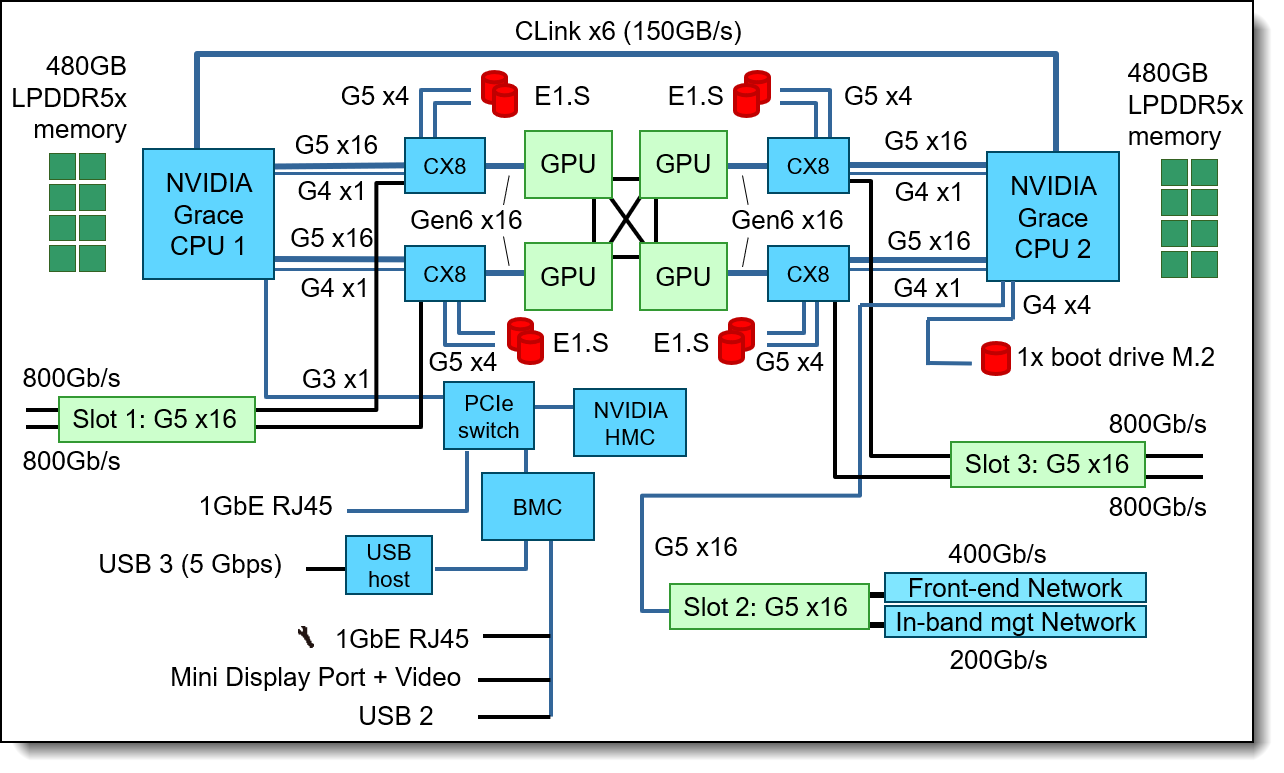 - Two NVIDIA Grace processors