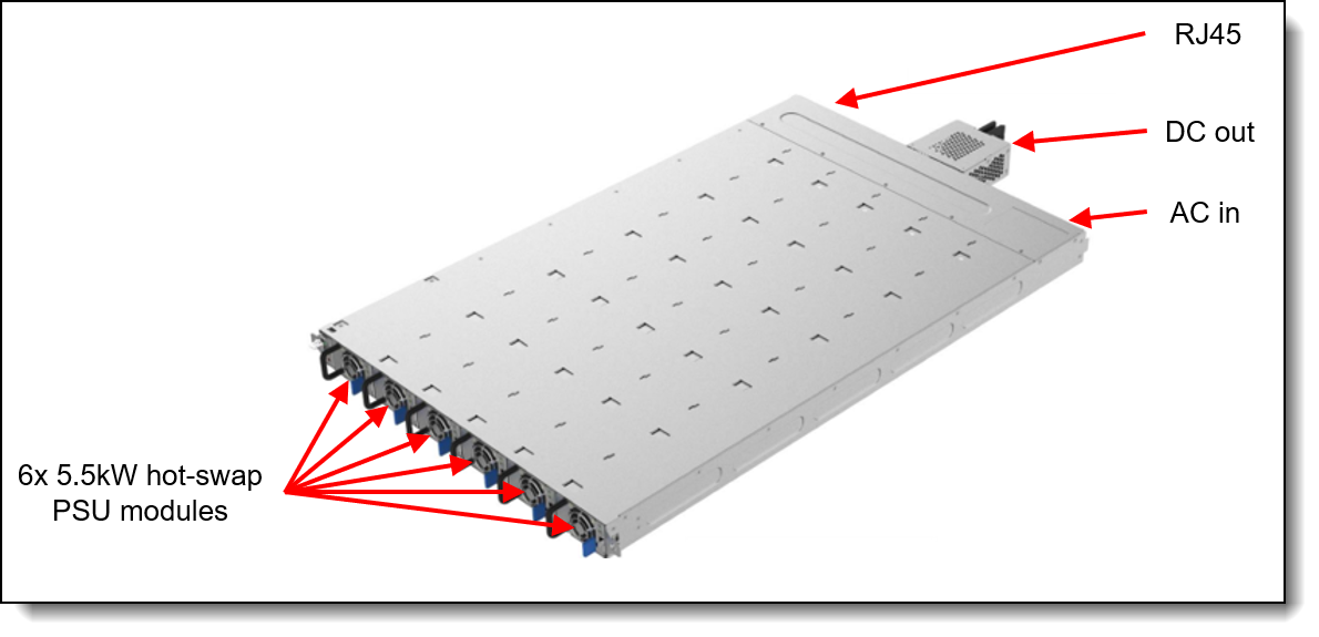 - Power shelves either 6 or 8. Quantity dependent on rack configuration and power redundancy requirement