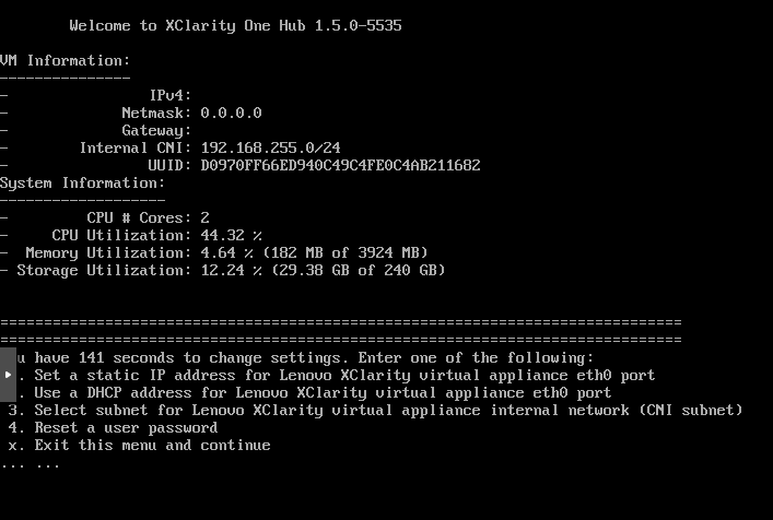 With this configuration we will be able to import the XClarity One Hub disk from GUI and import it to the VM.