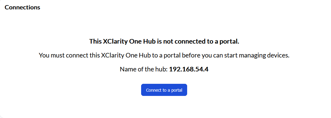 The XClarity One Hubs are installed as lightweight Virtual Appliances on premise in data centers across multiple sites, where devices to be managed are located. The XClarity One Hubs act as secure bridges between your devices and the XClarity One Portal. The XClarity One hub reduces your security risk through using only a single secure connection between the XClarity One Portal and on-premises/private cloud-managed devices.
