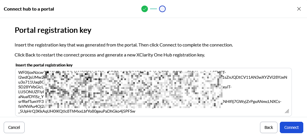 - Go back to the Hub web interface and paste the portal registration key, then click the Connect button.