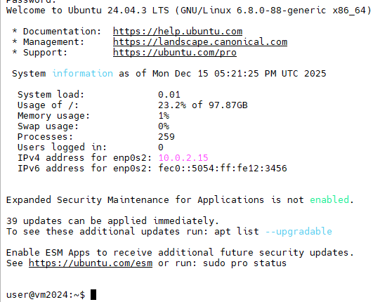 $ wget https://releases.ubuntu.com/noble/ubuntu-24.04.3-live-server-amd64.iso - Create a blank VM drive