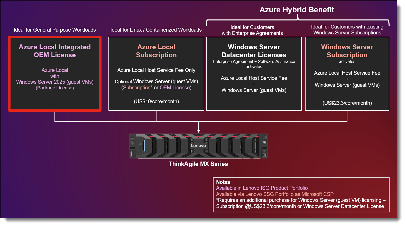 Figure 1. Azure Local Licensing Options on ThinkAgile MX Series