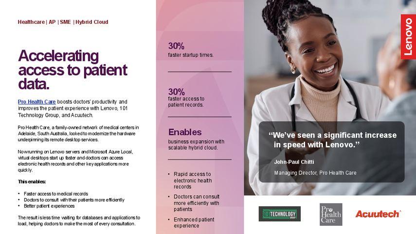 Pro Health Care boosts productivity and improves the patient experience with Lenovo, 101 Technology Group, and Acuutech.